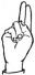 На ћирилици написано КОСТАДИН МАРЕЉ састоји се из 13 слова [?]. Исписано ћириличном једноручном азбуком за глувонеме:
